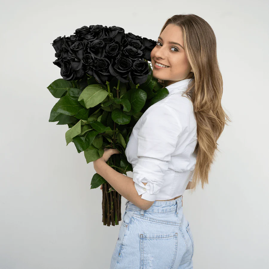 Design & build: The dye work here is notably uniform, so petals read as true black in person rather than dark burgundy. Lush heads plus dark greenery produce a couture feel—ideal for modern, monochrome decor or bold, non-traditional gifts.