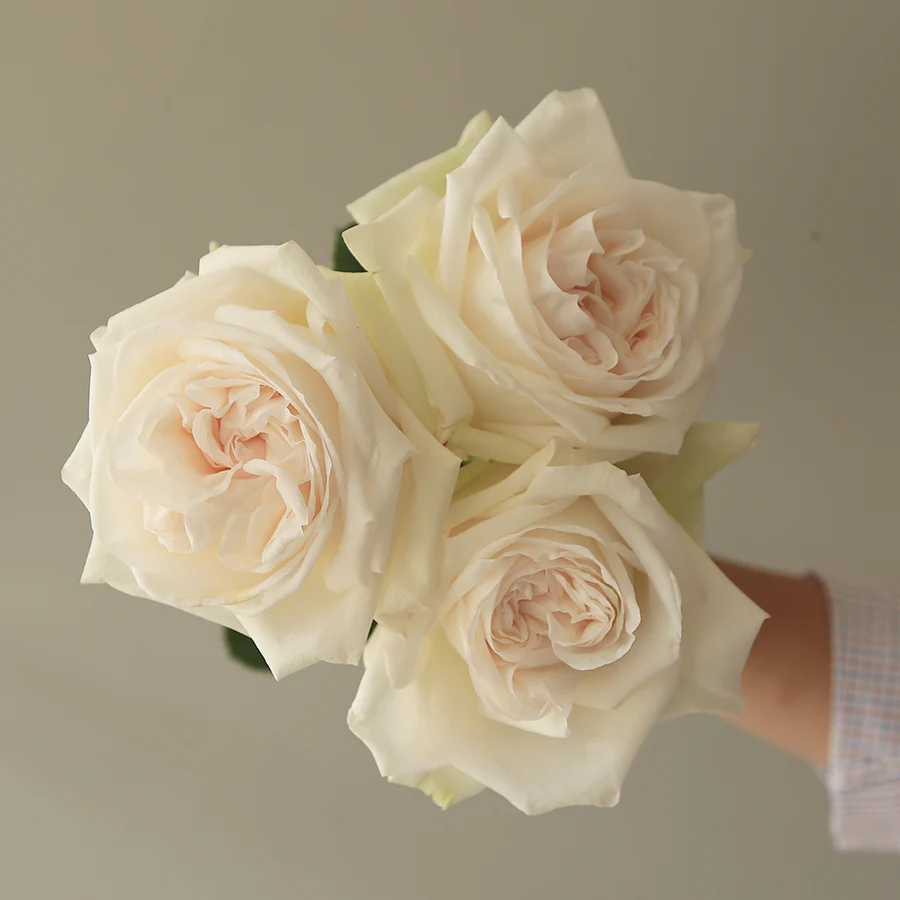 Design & build: Soft ivory centers with whisper-pink or light green edges are common in O’Hara, giving the bouquet visual depth without any extra filler. It’s a wedding-ready look—romantic, airy, and camera-friendly.